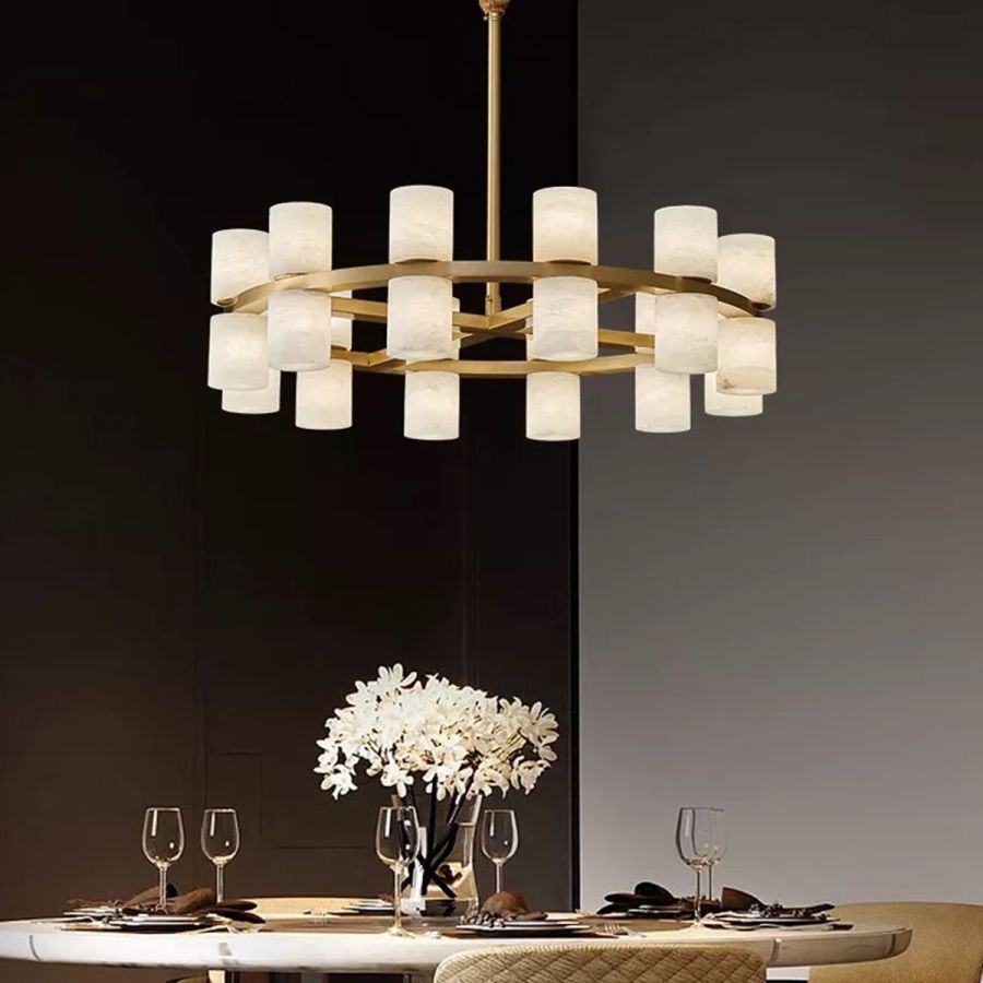 Illuminate your space with the timeless elegance of the Bernice Spanish Moonstone. Measuring 100cm, this exquisite piece features a harmonious arrangement of radiant alabaster cylinders, each showcasing the natural beauty and subtle translucence of alabaster stone.