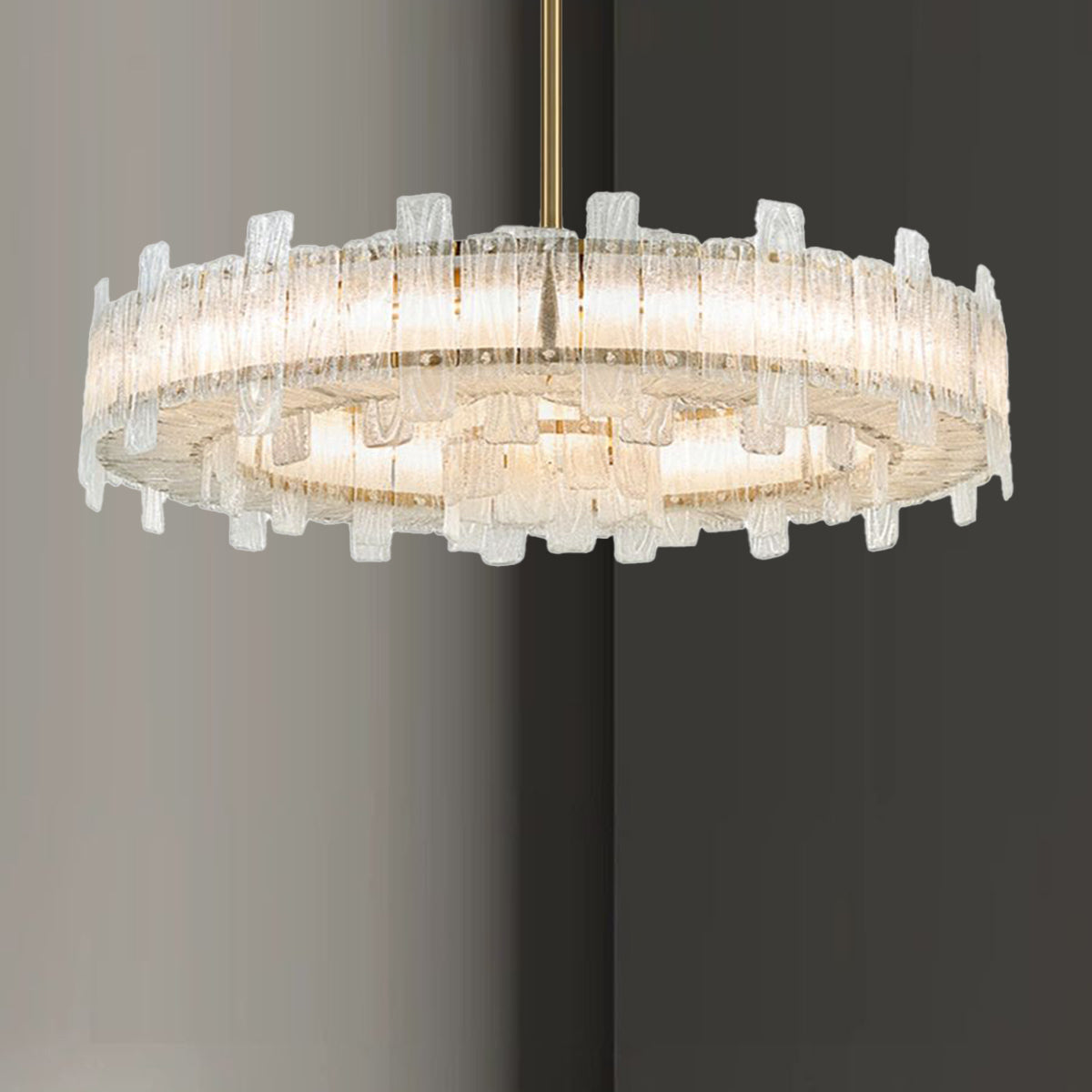 This Chandelier comes with rods in different lengths. The rods can be used singular or in combination, to create the desired hanging length. By adding one or both other rods you can create a pendant light.
