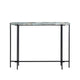 Its sleek rectangular silhouette makes it a versatile addition to hallways, living rooms, or entryways, while the exposed metalwork adds a modern architectural edge. The extended metal detail along the surface brings a sculptural element to its minimalist design.