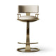 Resting on sleek matte black metal legs with subtle brass-tipped feet, this stool exudes contemporary charm while maintaining a timeless appeal. The integrated swivel mechanism adds functional ease, perfect for dynamic kitchen islands or stylish cocktail bars.