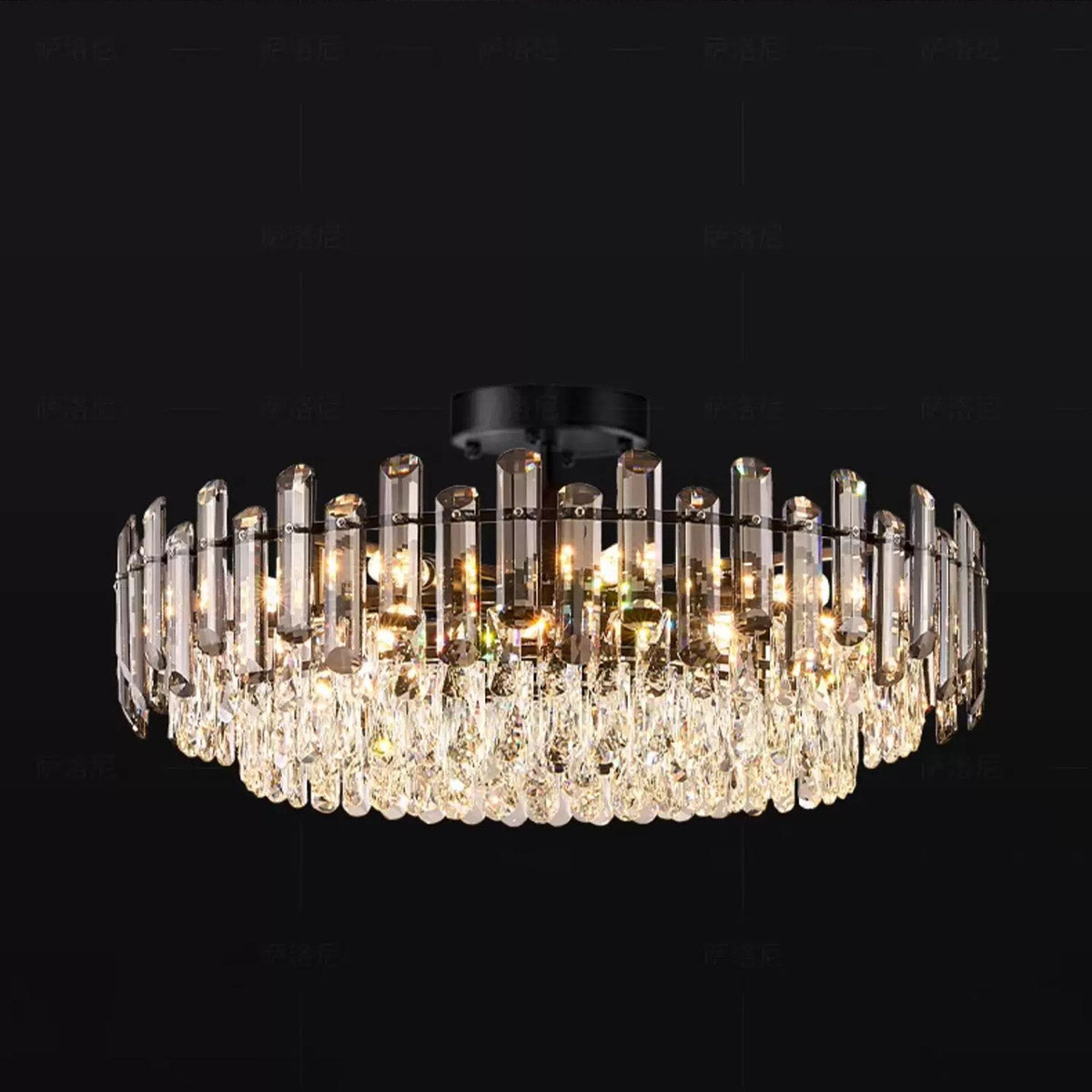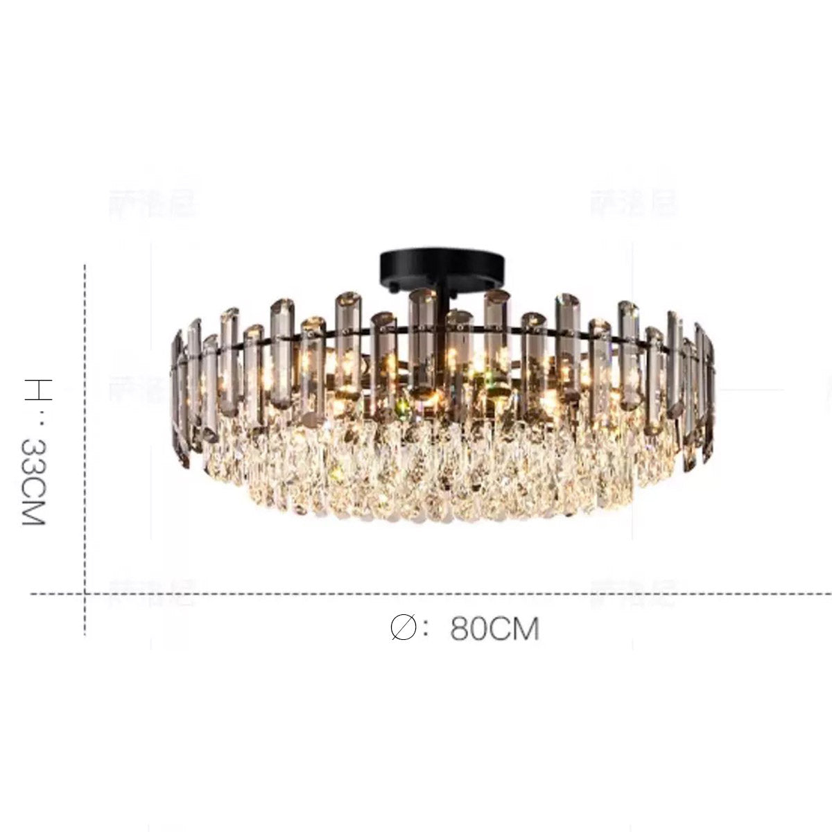 The Duskfall Flush Mount Chandelier exudes elegance and modern sophistication. This stunning fixture spans 80cm in diameter and has a compact height of 33cm, designed to add a luxurious touch to spaces with limited vertical space.