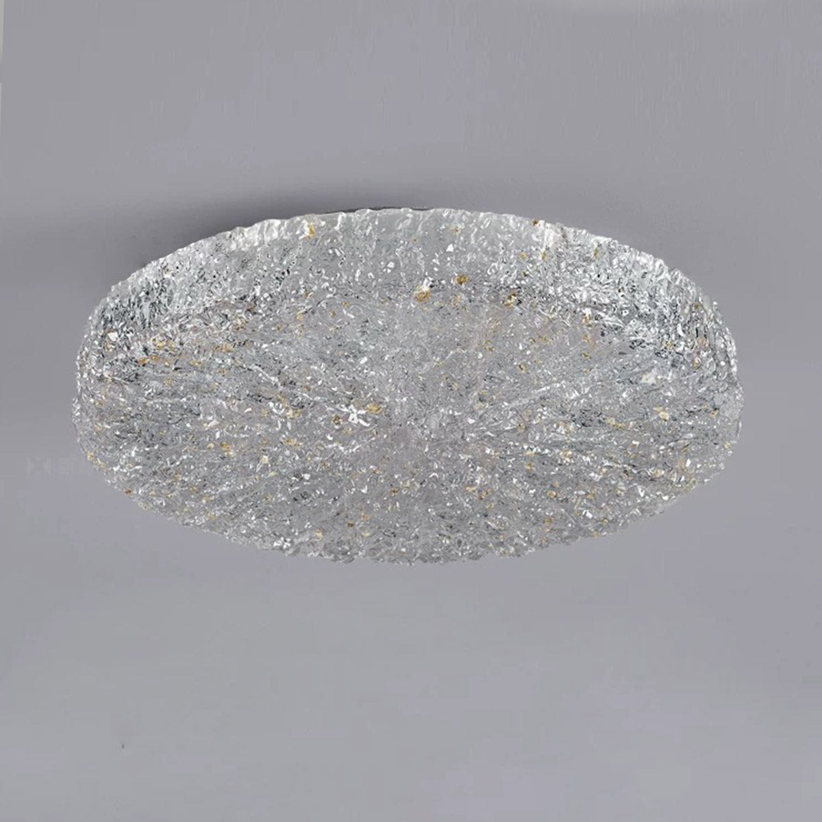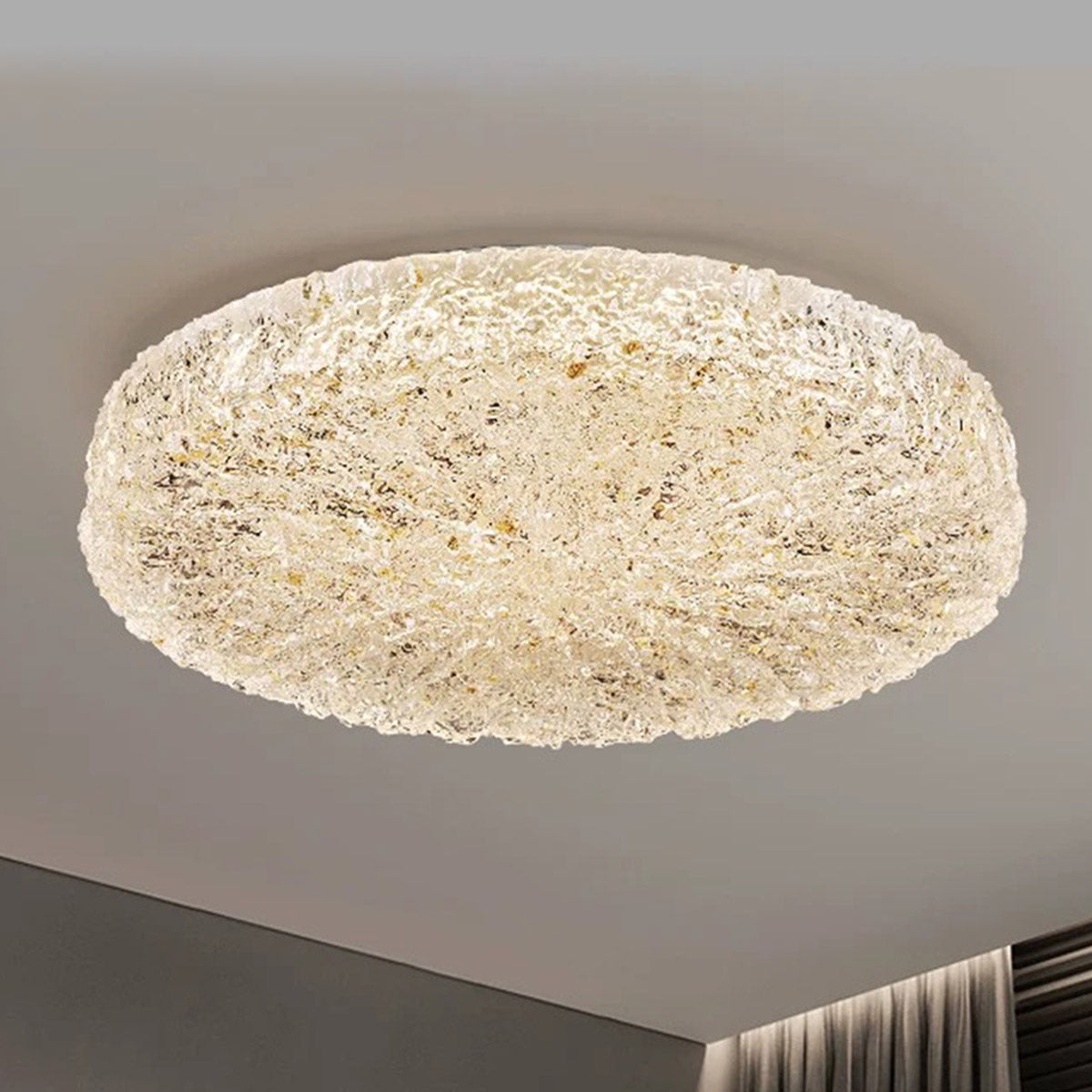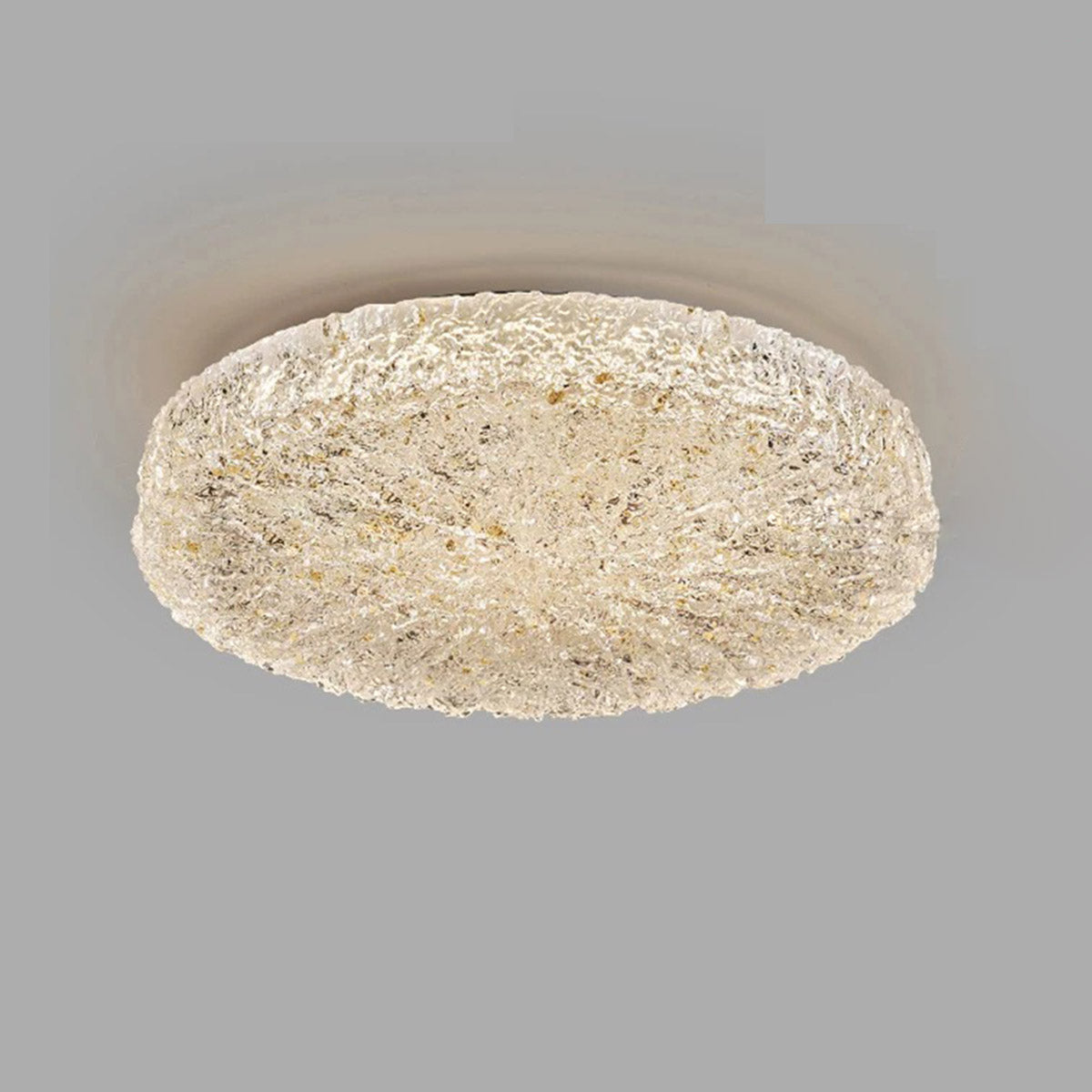 The Frost Flush Mount is designed with a dense cluster of crystalline fragments and gold leaf flakes, embedded within a subtle, circular design. This addition not only enriches the aesthetic with a touch of glamour but also adds a warm, reflective quality to the light emitted. As the light interacts with the gold flakes, it creates a radiant, inviting glow that enhances the ambiance of your space..