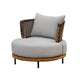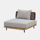 • Elegant Design: The Monte Sofa features a contemporary look with its clean lines and a neutral grey color palette, complemented by natural wood accents and intricate wicker detailing on the sides. This mix of materials adds a sophisticated touch to any patio, deck, or garden.