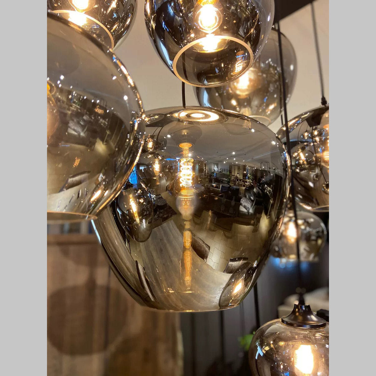 The Vance Pendant Light, featuring a large smoke glass dome, offers a modern twist on classic lighting design. This elegant pendant creates a focal point in any space, reflecting light and surroundings with its polished, smoke-tinted surface.