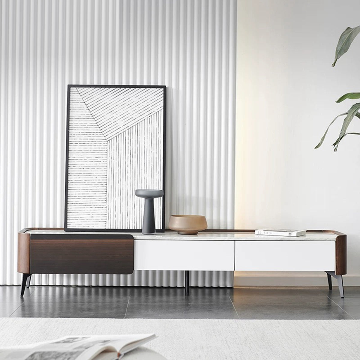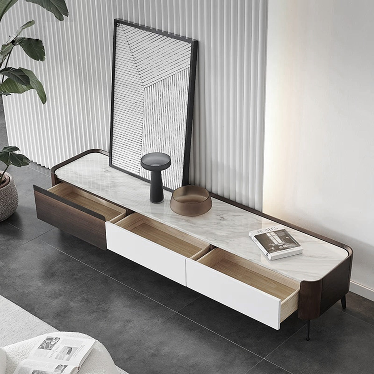 Bring style and functionality to your living room with the Wayne TV Media Unit, a sleek and modern piece designed to complement any contemporary home. Featuring a luxurious walnut finish, a marble-effect top, and three spacious drawers, this media unit seamlessly blends aesthetics with practical storage.