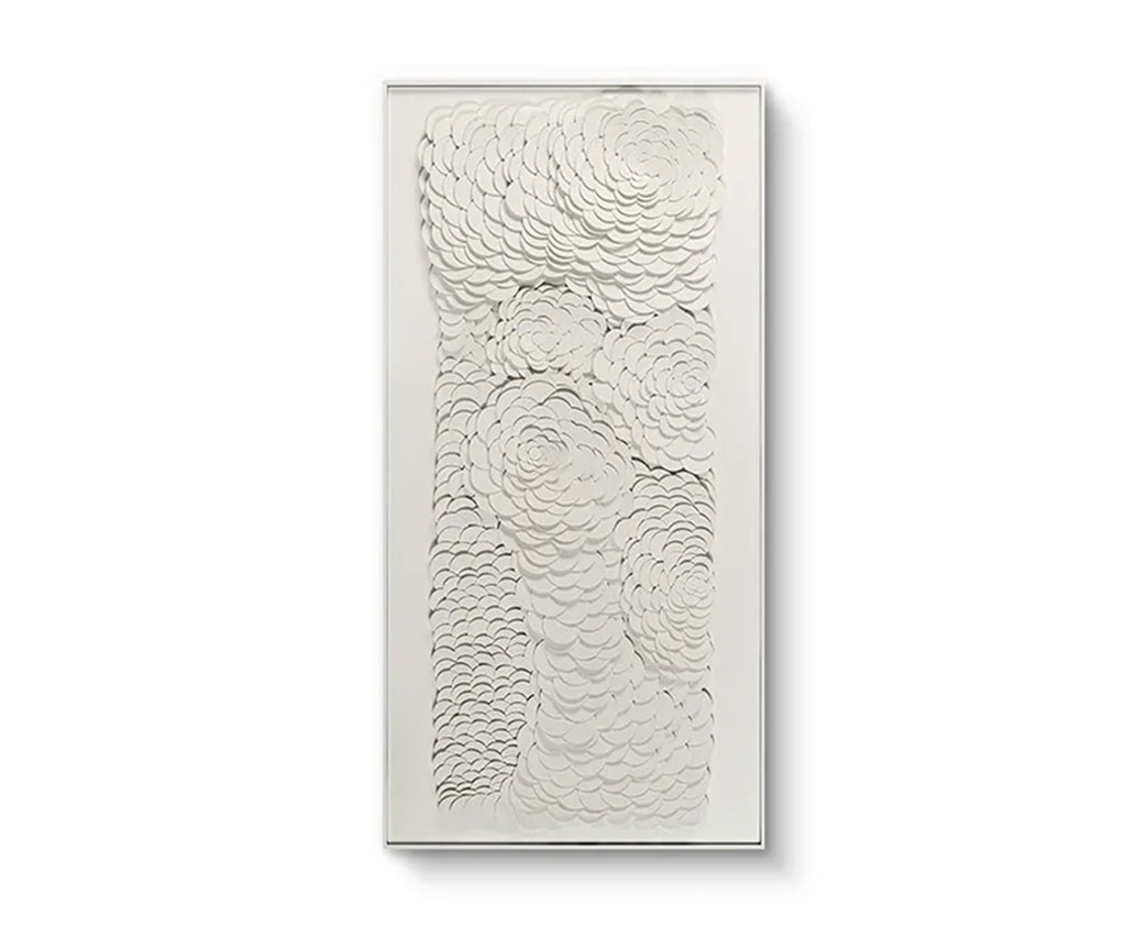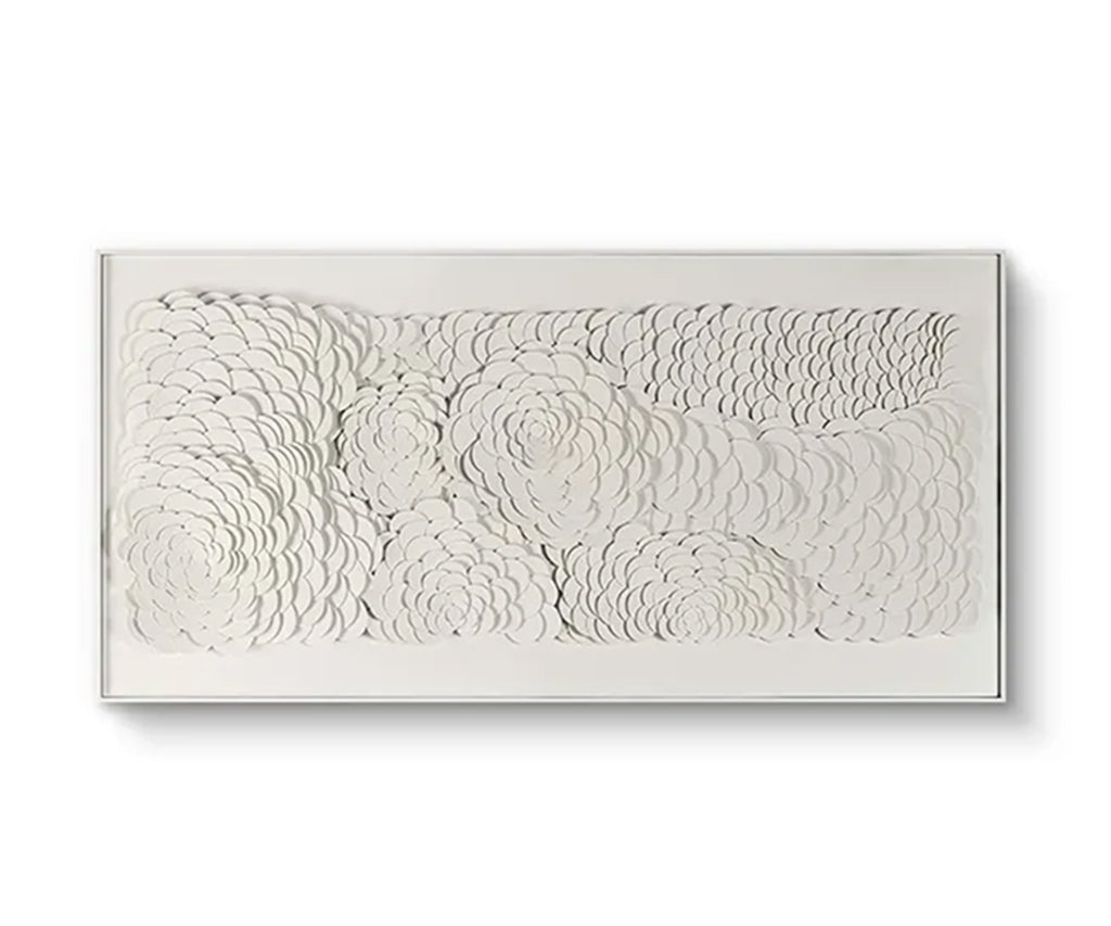 This contemporary art set is inspired by modern art and abstract. Lumi 3D Wall Art offers classic white leather, blending with other textures and shades of white. Small leather pieces pedals create an impression of a flower. Lumi makes it an ideal wall art to coordinate with a monochromatic interior style.