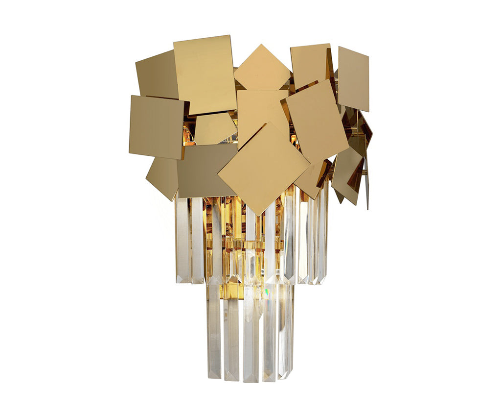 Channel a new dimension into your interior design scheme with the captivating Hemera Wall Lamp. Exuding restrained opulence, this designer table lamp features multi-faceted stainless steel pieces overlapping to create a lamp shade beneath crystal stems.
