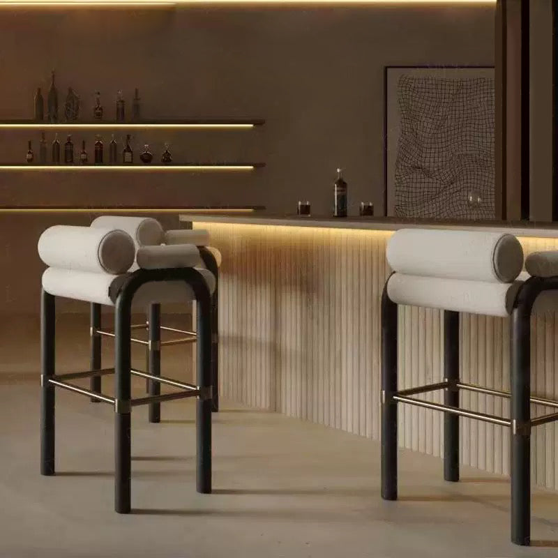 Introducing the Armature Bar Stool—a perfect synthesis of modern aesthetics and functional elegance. This stool features a robust, dark-finished wooden frame accented by sleek brass elements that both enhance stability and inject a dash of opulence.