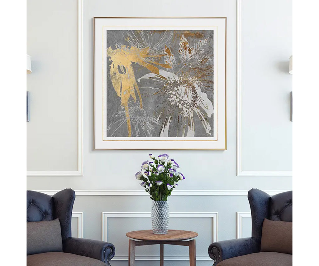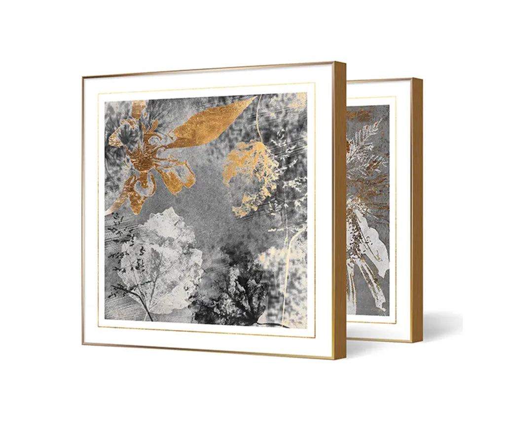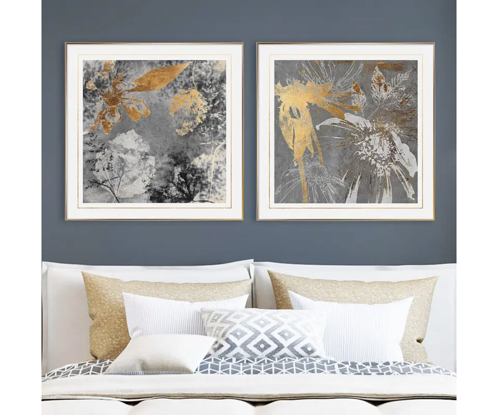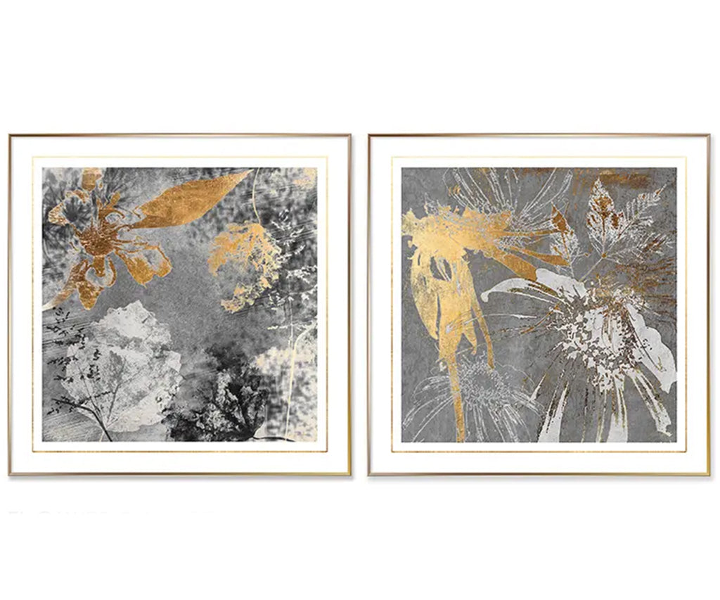 The contemporary art set inspired by the nature and movement. Flower Dance Wall Art Set of 2 offered a variat shades of grey with splash of gold leaf. Crate layers and makes it easy to coordinate with warm metallic accessories with beautiful greys.