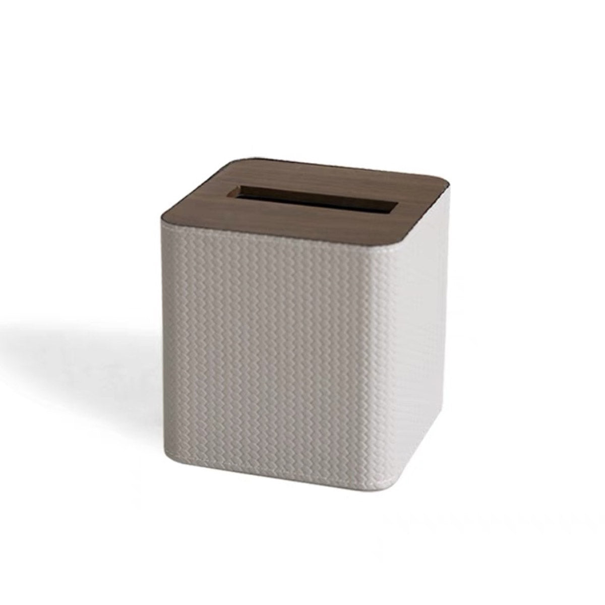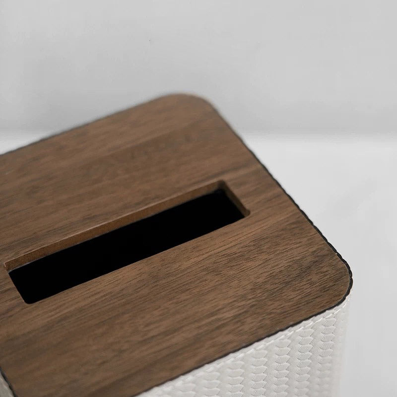 Crafted from high-quality materials, the Svelte Tissue Box boasts a sturdy construction with a contemporary matte finish. The top panel, made from rich, dark wood, seamlessly integrates a discreet slot that allows for easy access to tissues while maintaining a clean, uncluttered look. This blend of natural wood and refined texturing makes the Svelte Tissue Box a perfect fit for both modern and traditional decors.